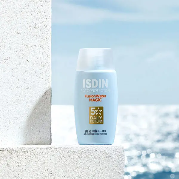 ضدآفتاب فیوژن واتر مجیک ایزدین یکی از انواع ضد آفتاب های برند ایزدین است که بافتی فوق العاده سبک و زود جذب روی پوست داشته و برای استفاده روزانه ایده آل است. این ضد آفتاب علاوه بر محافظت بالا از پوست در برابر اشعه های مضر نور خورشید با SPF50، پوست را رطوبت رسانی کرده، چربی آن را کنترل می‌کند و دارای خاصیت آنتی اکسیدانی است. ضد افتاب ایزدین مجیک برای پوست‌های چرب ایده آل است، فاقد روغن‌های معدنی است، جلوه‌ای کاملا مات روی پوست دارد و احساس چربی و سنگینی ایجاد نمی‌کند.